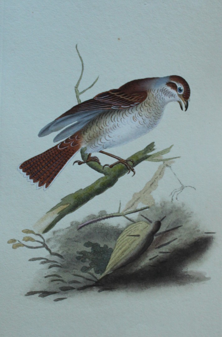 Lot 110109: Edward Donovan - Hand-coloured engraving of Red-backed Shrike, female 1794