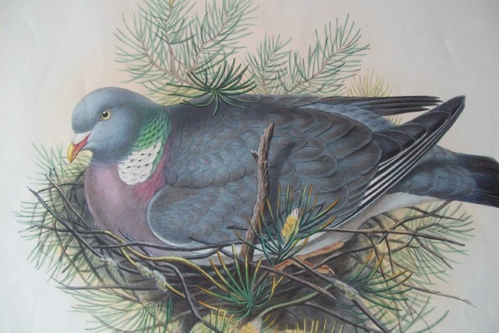 This original lithograph of the Wood Pigeon or Cushat (Palumbus torquatus) is from John Gould’s Birds of Great Britain, issued in 25 parts between 1862 and 1873. This plate is number 1 from volume 4 of this work and was drawn and lithographed by John Gould & HC Richter.