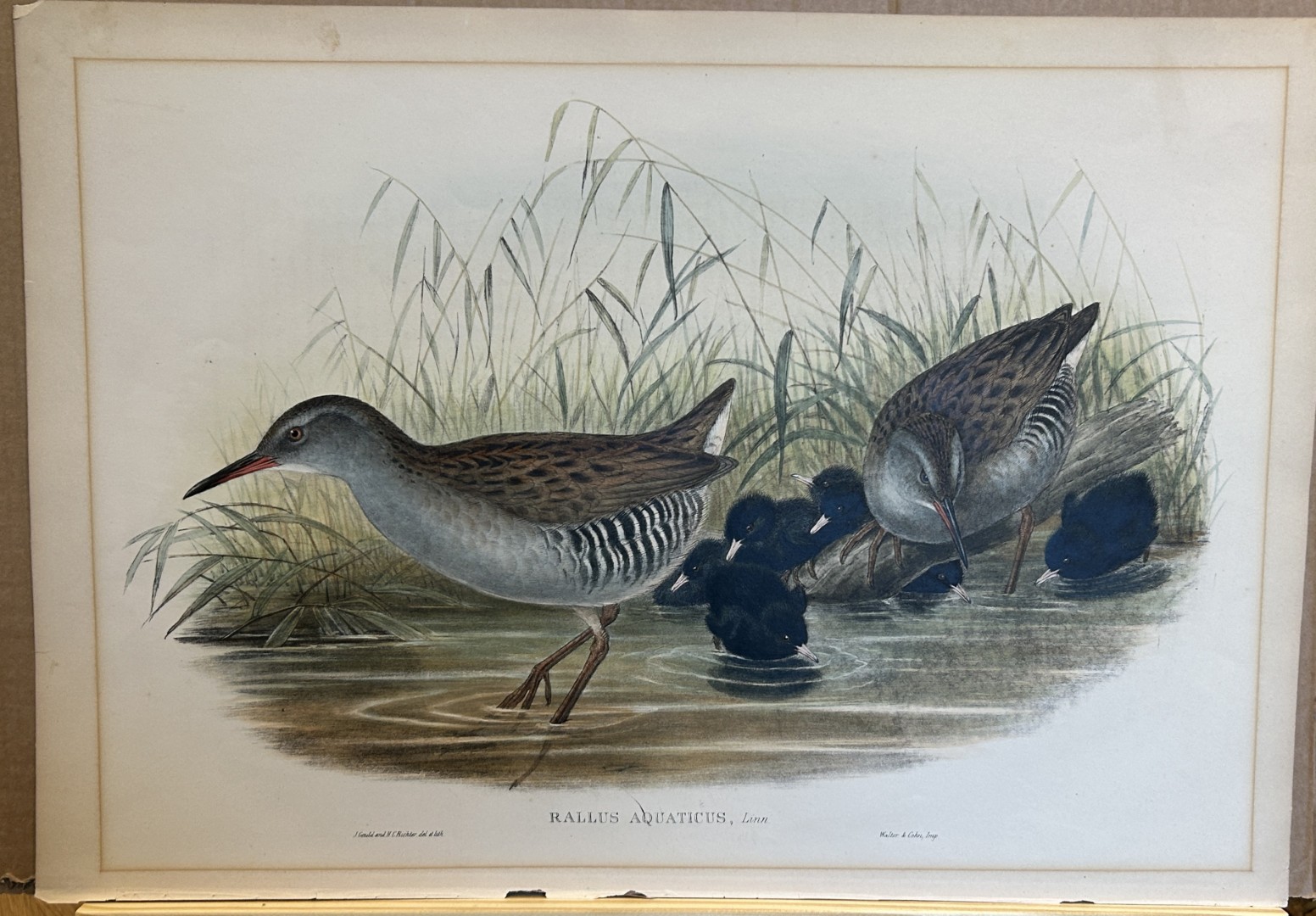 This original lithograph of the Water-Rail (Rallus aquaticus) is from John Gould’s Birds of Great Britain, issued in 25 parts between 1862 and 1873. This is plate 86 from volume 4 and was drawn and lithographed by John Gould & HC Richter.