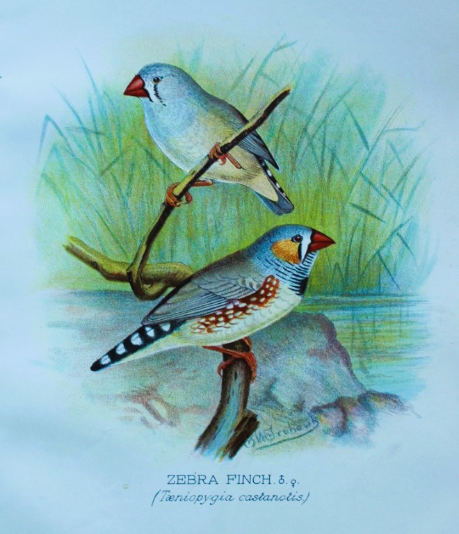 This chromolithographic plate was drawn by Frederick W Frohawk and is from Foreign Finches in Captivity by Arthur G Butler, published by Brumby and Clarke Ltd, 1899.