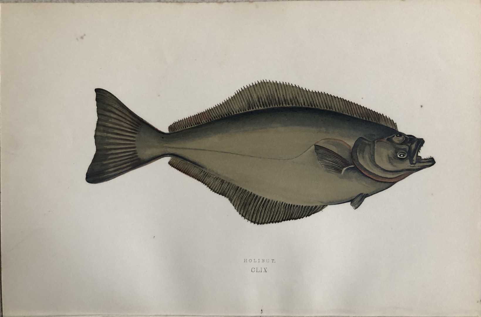 Lot 122287: Jonathan Couch - Hand coloured print of the Halibut 1877