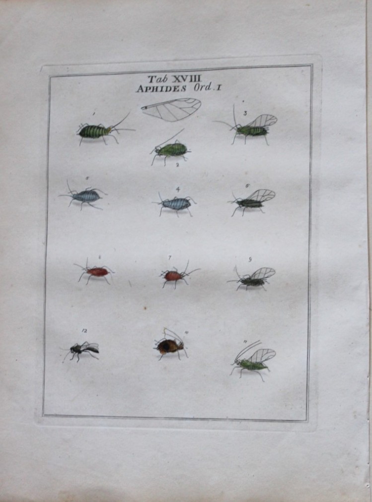 These original hand-coloured copper-plate engravings of Aphids and Flies are from An Exposition of English Insects by Moses Harris. Printed for the author by Messrs Robson & Co London 1776.