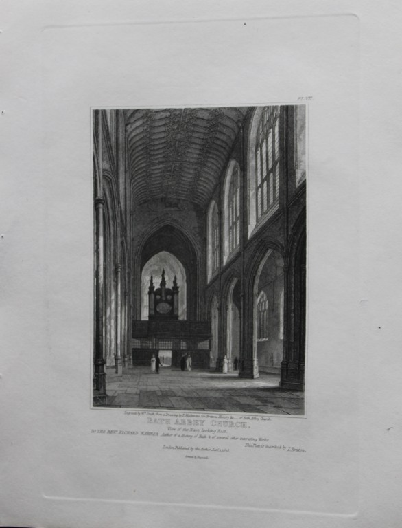 Original engraving of the Nave in Bath Abbey Church by W Smith after F Mackenzie. Published by John Britton, London 1825.