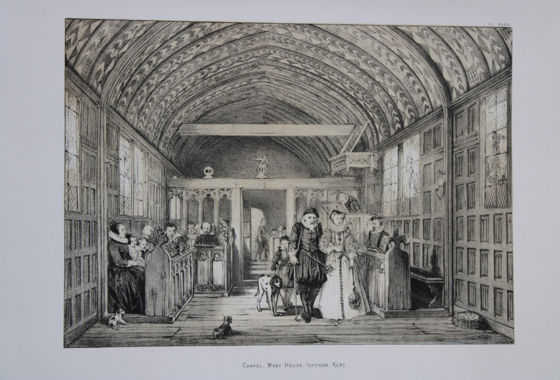 This lithograph of The Chapel at Moat House, Ightham, Kent is from The Mansions of England in the Olden Time by Joseph Nash. Printed by M & N Hanhart and published by Henry Sotheran & Co., London, in four parts from 1869-1872.