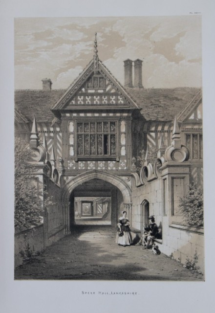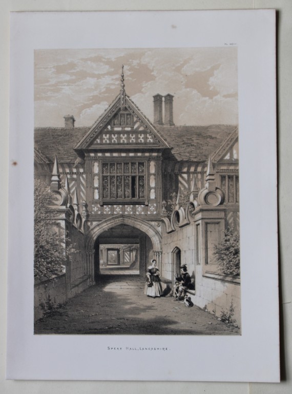 These three lithographs of Speke Hall, Lancashire are from The Mansions of England in the Olden Time by Joseph Nash. Printed by M & N Hanhart and published by Henry Sotheran & Co., London, in four parts from 1869-1872.