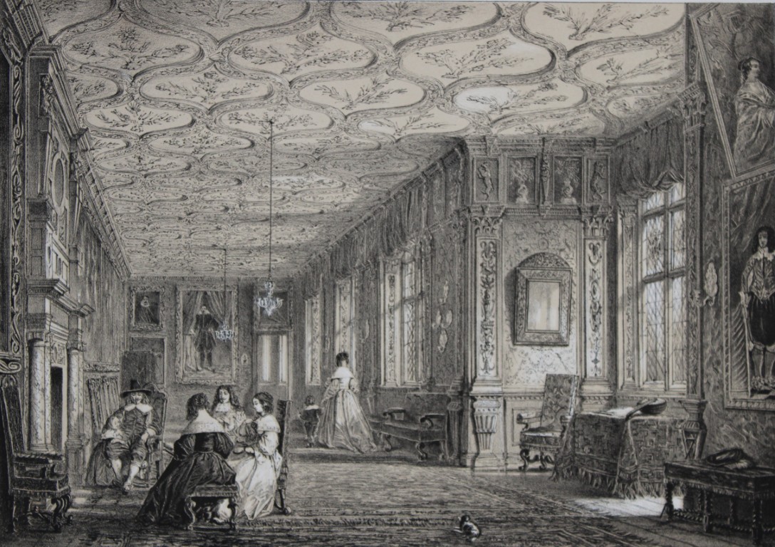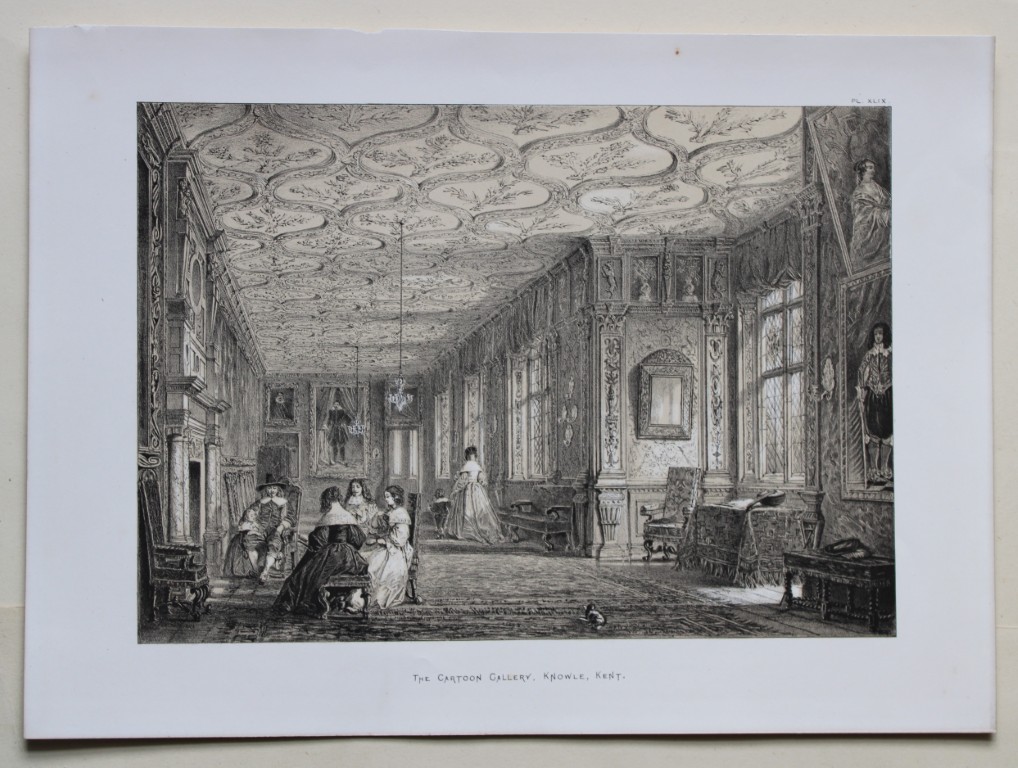 These two lithographs of The Hall and The Cartoon Gallery at Knowle, Kent are from The Mansions of England in the Olden Time by Joseph Nash. Printed by M & N Hanhart and published by Henry Sotheran & Co., London, in four parts from 1869-1872.