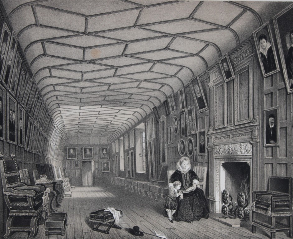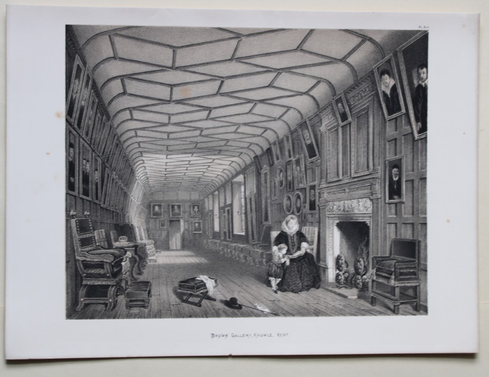 These two lithographs of The Gallery over the Hall and The Brown Gallery at Knowle, Kent are from The Mansions of England in the Olden Time by Joseph Nash. Printed by M & N Hanhart and published by Henry Sotheran & Co., London, in four parts from 1869-1872.