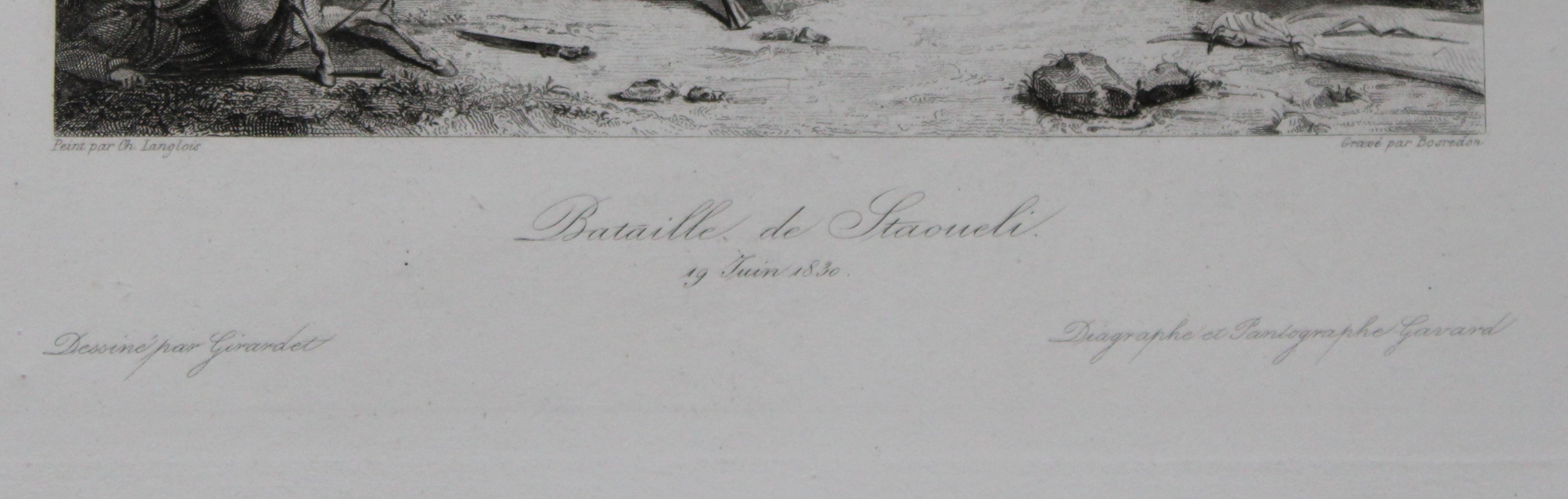 This steel engraving entitled Bataille de Straoueli was engraved by Bosiedon after Charles Langlois 1840.