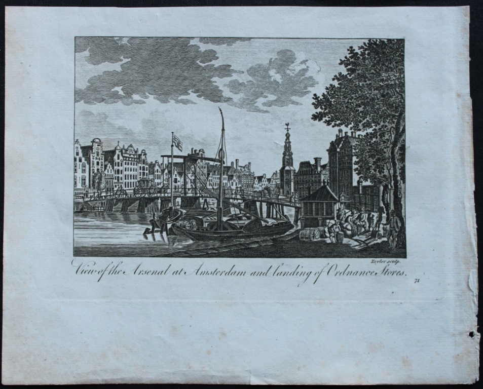 Full title of the print is View of the Arsenal at Amsterda and the landing of Ordnance Stores