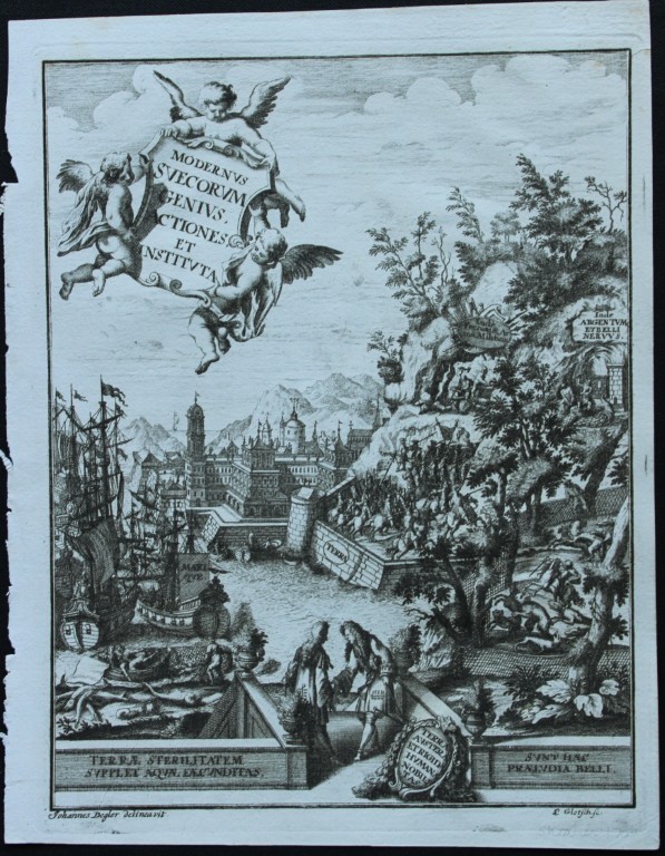 Inscription reads: Modernus Suecorum Genivs, Actiones et Institvta (Modern Swedish Genius, Actions and Institutions)