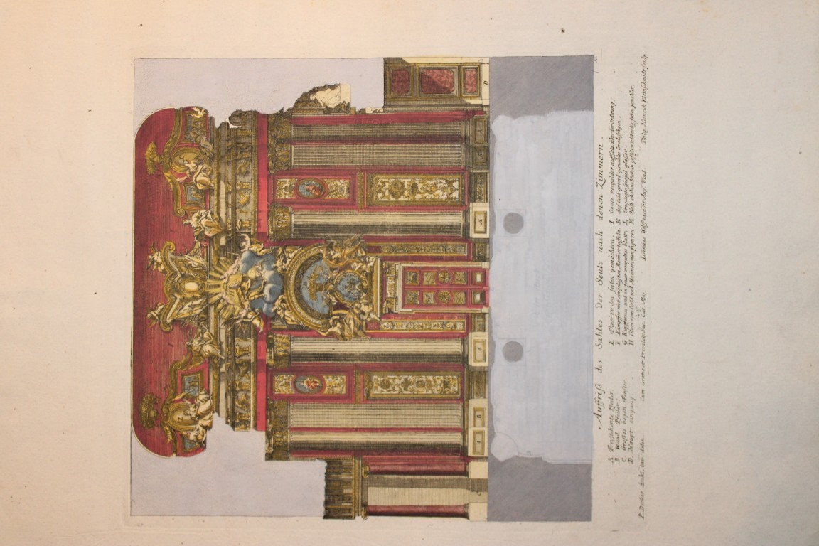 This beautiful hand coloured copperplate engraving is from Fürstlicher Baumeister, Oder Architectura Civilis (The Princely Architect or: Civil Architecture) by Paul Decker the Elder and engraved by Carl Remshart.