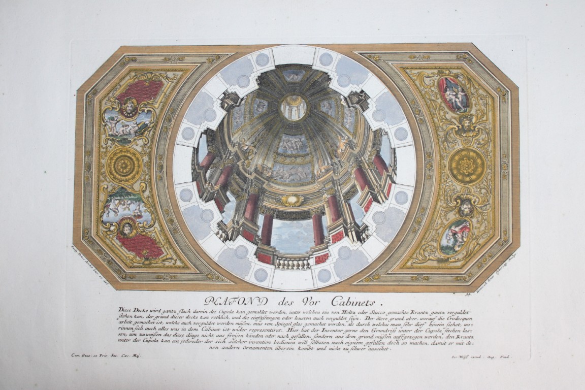 This beautiful hand coloured copperplate engraving is from Fürstlicher Baumeister, Oder Architectura Civilis (The Princely Architect or: Civil Architecture) by Paul Decker the Elder and engraved by Carl Remshart.