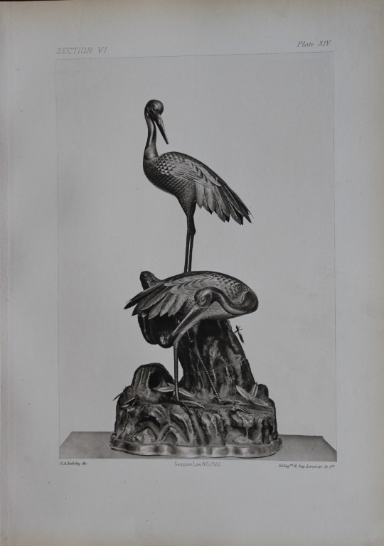 This beautiful chromolithographic print is from The Ornamental Arts of Japan by George Ashdown Audsley. 1st edition, published by Sampson Low, Marston, Searle, & Rivington, London 1882-4,