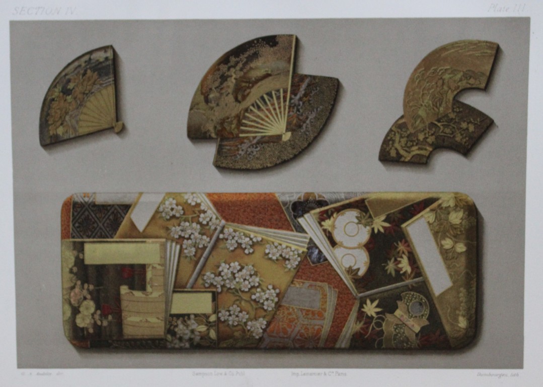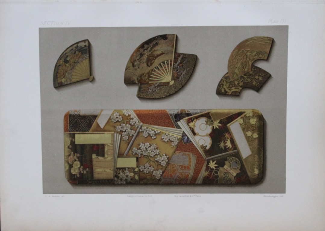 This beautiful chromolithographic print is from The Ornamental Arts of Japan by George Ashdown Audsley. 1st edition, published by Sampson Low, Marston, Searle, & Rivington, London 1882-4,