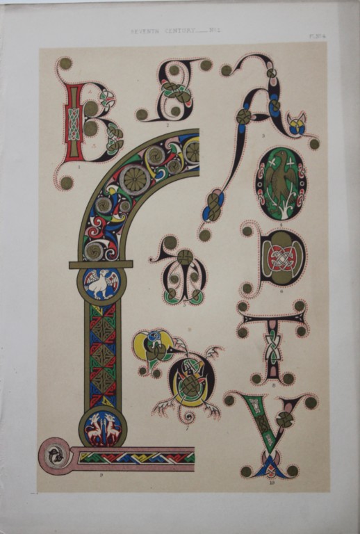 This beautiful chromolithographic print is from The Art of Illuminating as Practised in Europe from the Earliest Times by W R Tymms and M Digby Wyatt. Published by Day & Son, London 1860. 1st Edition.