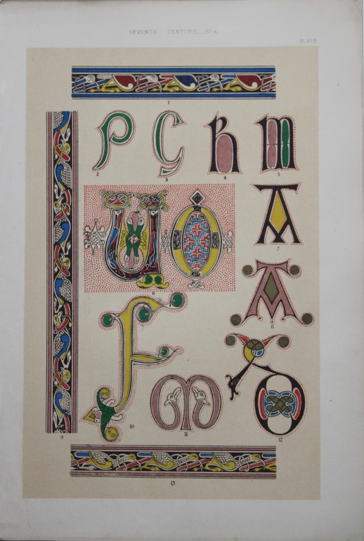 This beautiful chromolithographic print is from The Art of Illuminating as Practised in Europe from the Earliest Times by W R Tymms and M Digby Wyatt. Published by Day & Son, London 1860. 1st Edition.