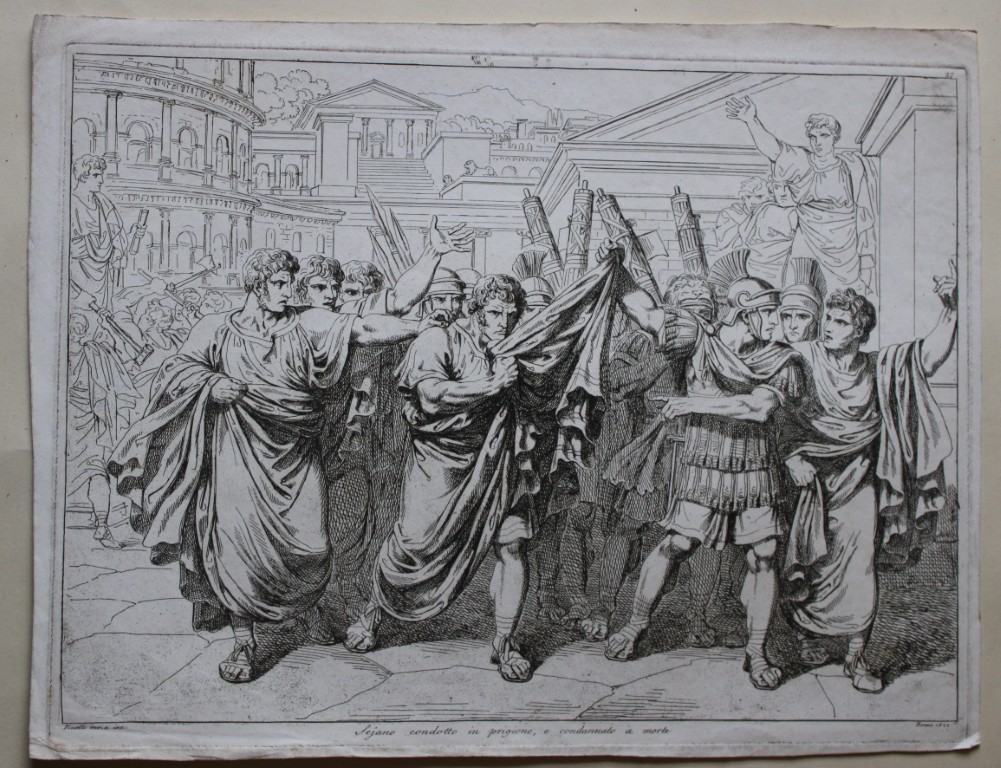The plate is entitled Seiano condotto in prigione e condannato a morte (Sejanus was taken to prison and sentenced to death).
