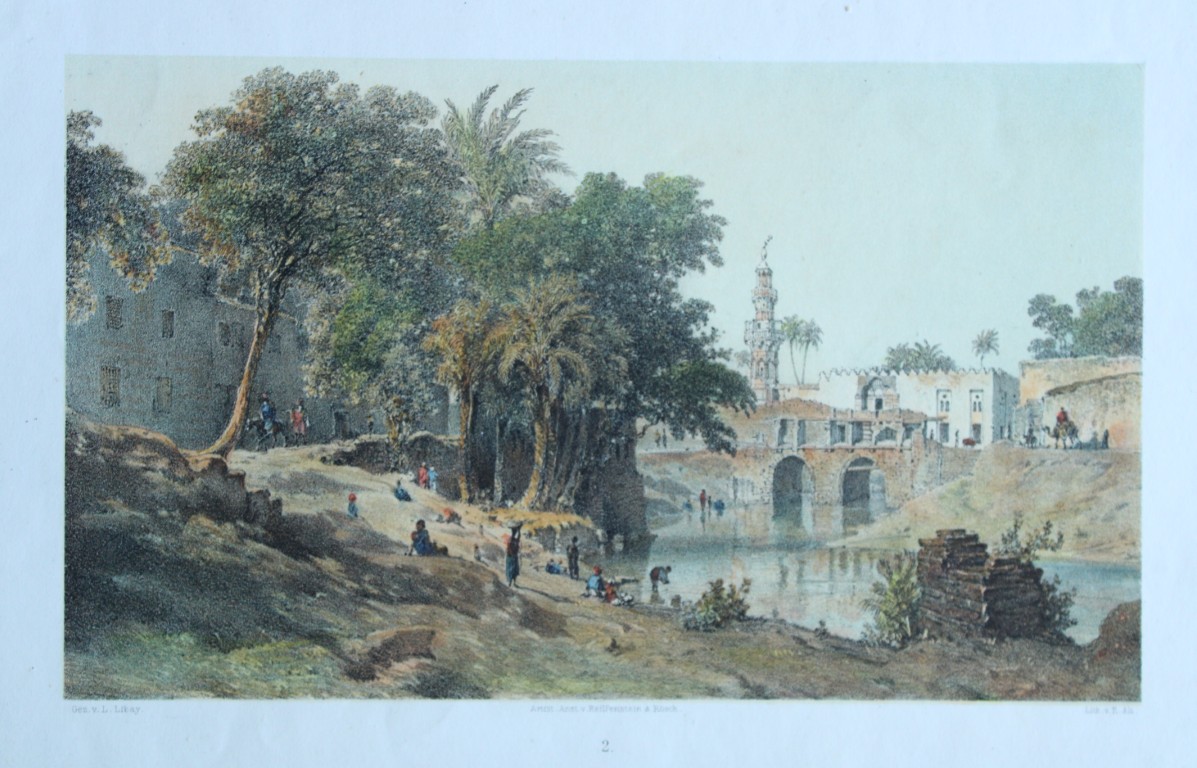 Lot 10043: Karol Ludovit Libay - Lithograph of View of Minieh, Egypt 1850