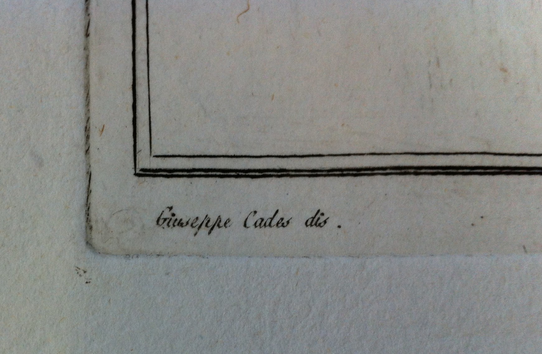 This attractive original etching of San Romano was drawn by Giuseppe Cades and engraved by Pietro Bombelli. Rome 1795.