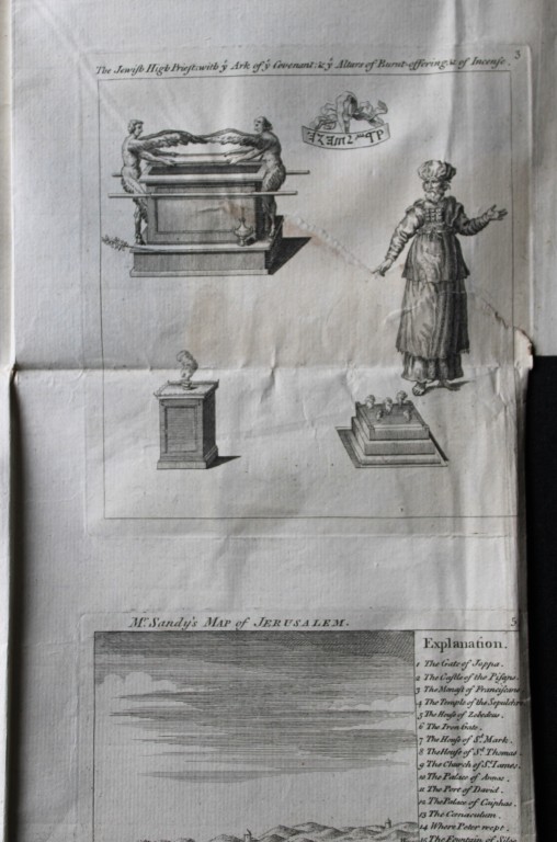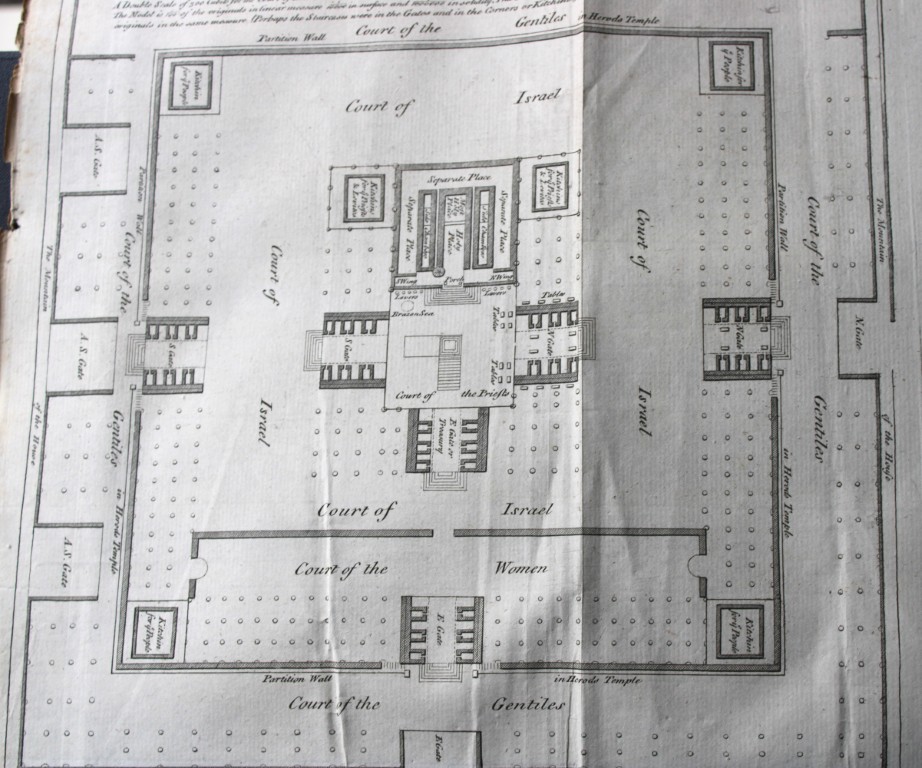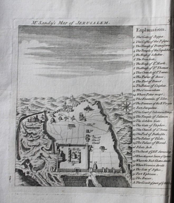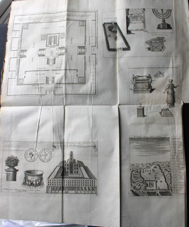 Rare folding engraved plan of Jerusalem by Flavius Josephus from The Genuine and Complete Works of Flavius Josephus, the celebrated warlike, learned and authentic Jewish Historian…To which is now first added, A continuation of the history of the Jews, from Josephus down to the present Time, including a Period of more than 1700 Years by George Henry Maynard, illustrated with marginal references by the Rev. Edward Kimpton.
