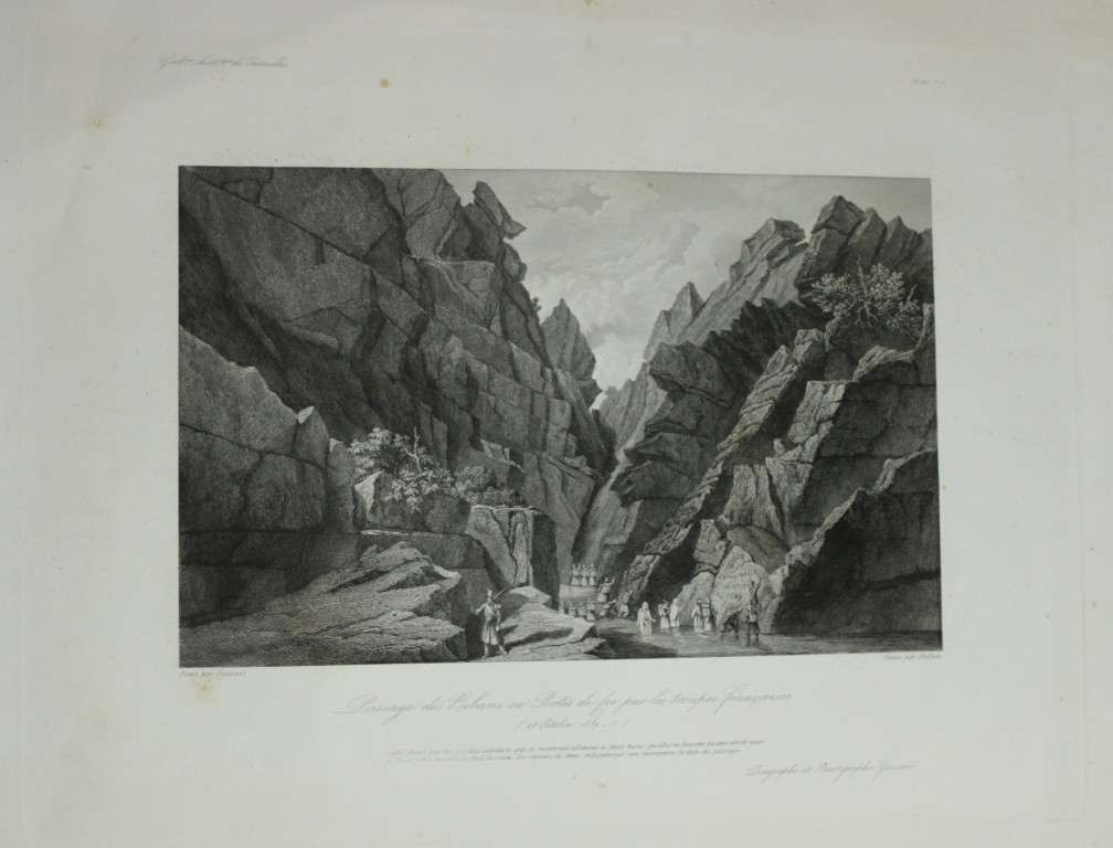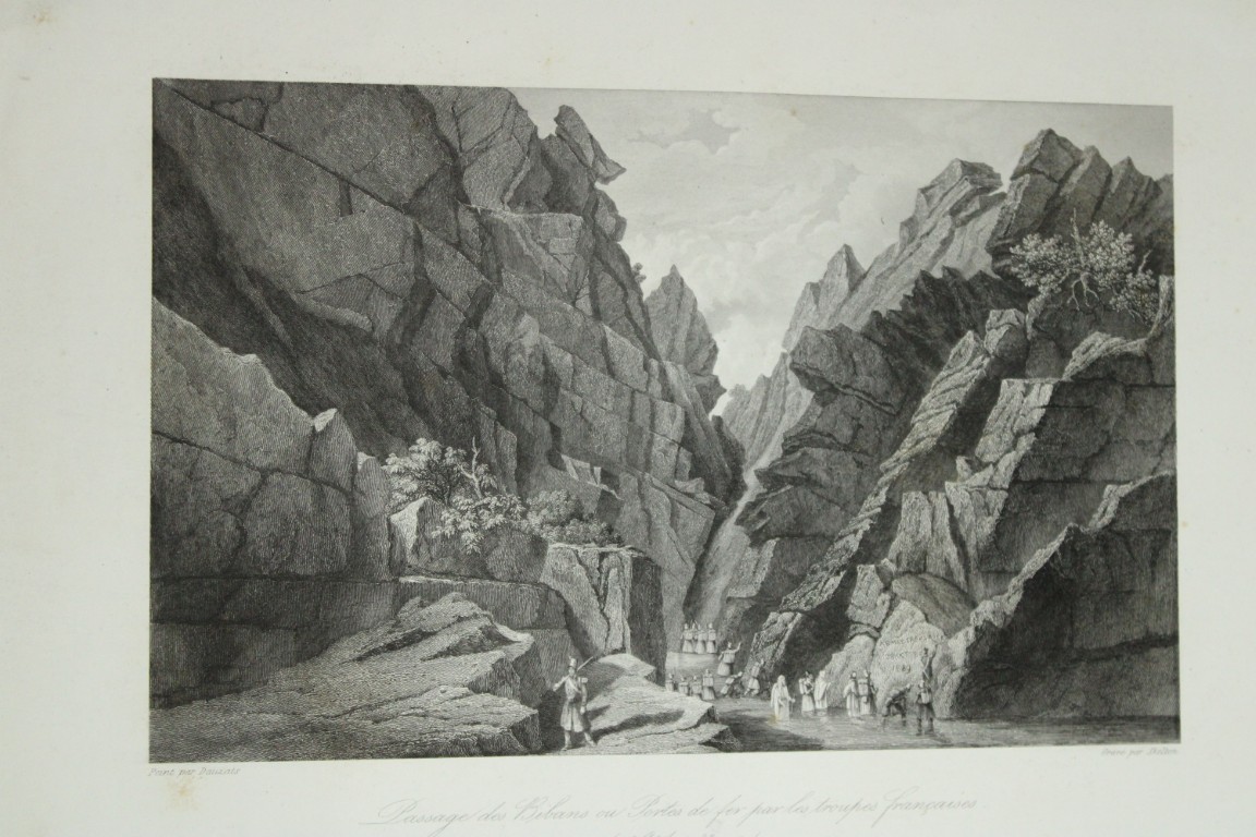 This steel engraving entitled Passage des Bibans portes de fer par les troupes Françaises (Passage of French troops through Bibans) is by William Skelton after Adrien Dauzats 1840.