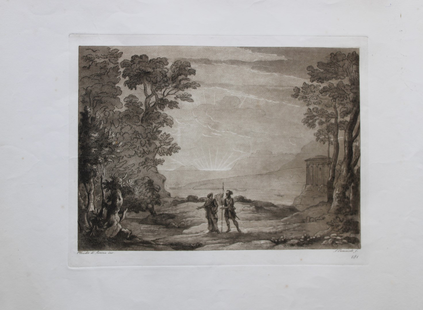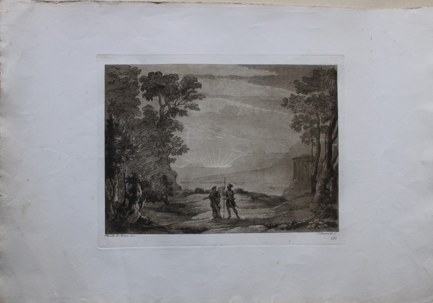 This rare etching is plate 181 from Liber Veritatis, published by Francesco Bourlie, Rome 1815, from the original drawing of Claudio di Lorena (aka Claude Lorrain).