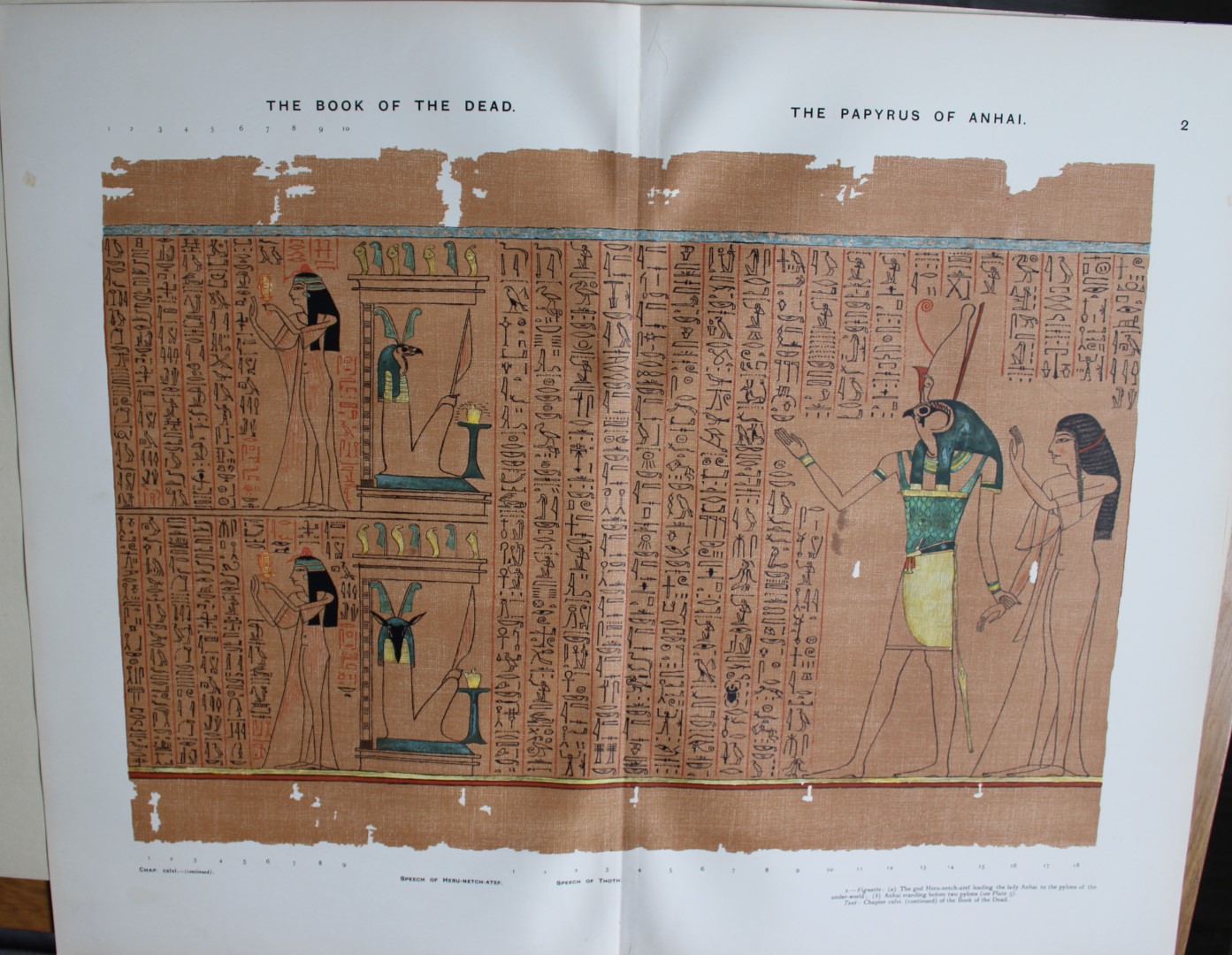 This large chromolithograph print is from E.A. Wallis Budge’s The Book of the Dead – Facsimiles of the Hunefer, Anhai, Kerasher, Nu and Netchemet Papyri. Published by The British Museum and others in London in 1899.