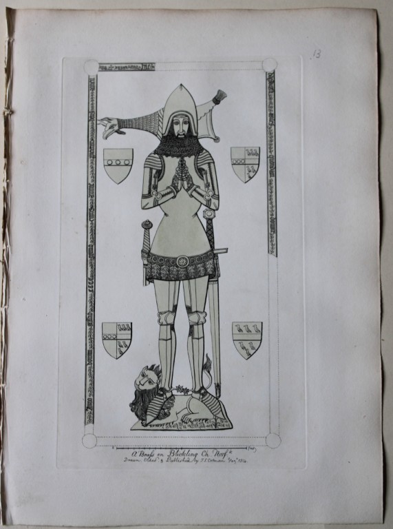 This original 204-year-old etching at Blickling Church,Norfolk is from the first edition of Engravings of Sepulchral Brasses in Norfolk by John Sell Cotman. Published in Yarmouth by JS Cotman in 1819.