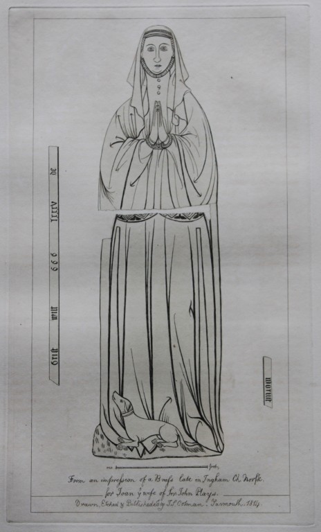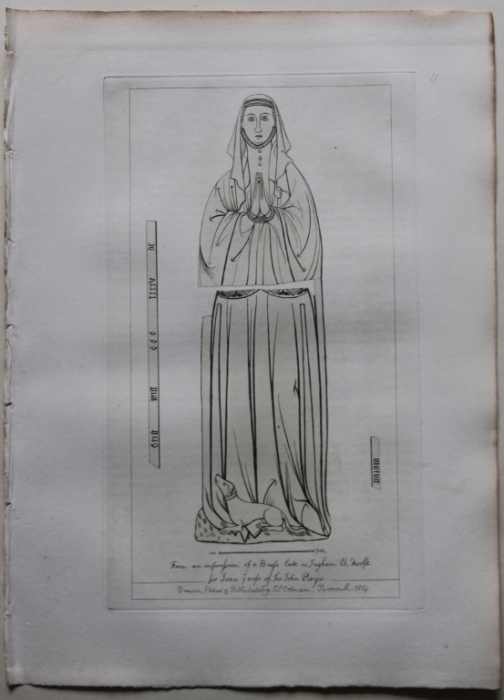 This original 204-year-old etching at Ingham Church, Norfolk is from the first edition of Engravings of Sepulchral Brasses in Norfolk by John Sell Cotman. Published in Yarmouth by JS Cotman in 1819.