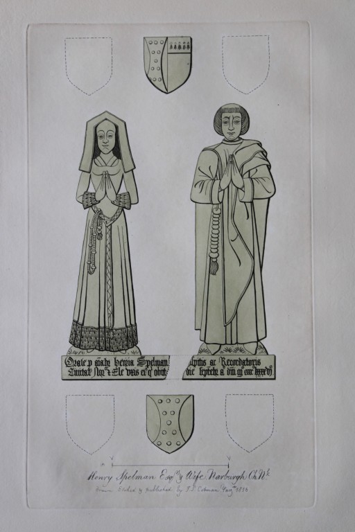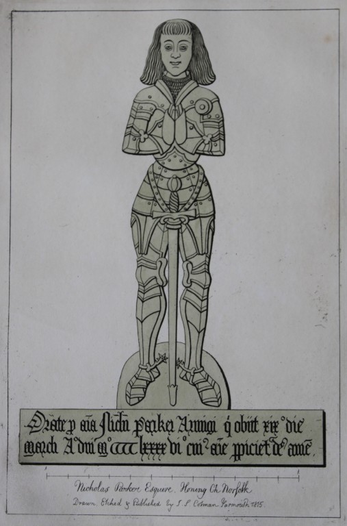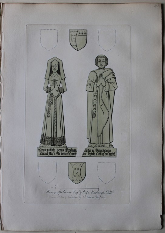 The full title of this work is Engravings of Sepulchral Brasses in Norfolk tending to illustrate the Ecclesiastical, Military and Civil Costume as well as to preserve memorials of Ancient Families in that County. In addition to an introductory essay by Dawson Turner Esq. the notes were prepared by Sir Samuel Rush Meyrick, Albert Way & Sir N Harris Nicolas.