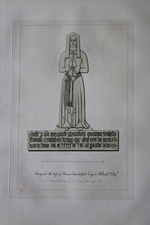 This original 204-year-old etching at Feltwell Church, Norfolk is from the first edition of Engravings of Sepulchral Brasses in Norfolk by John Sell Cotman. Published in Yarmouth by JS Cotman in 1819.