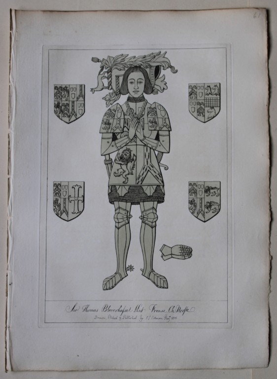 The full title of this work is Engravings of Sepulchral Brasses in Norfolk tending to illustrate the Ecclesiastical, Military and Civil Costume as well as to preserve memorials of Ancient Families in that County. In addition to an introductory essay by Dawson Turner Esq. the notes were prepared by Sir Samuel Rush Meyrick, Albert Way & Sir N Harris Nicolas.