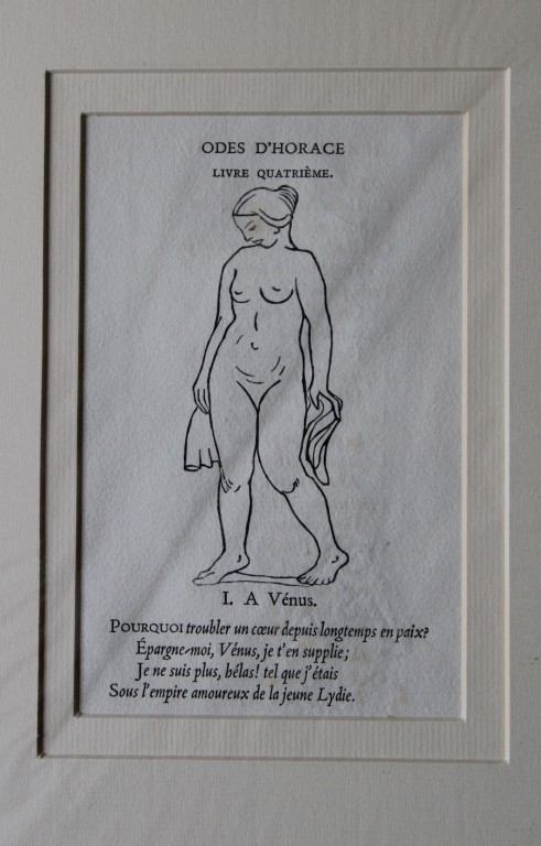 This woodcut engraving is from Odes d’Horace by the artist Aristide Joseph-Bonaventure Maillol (French, 1861-1944).
