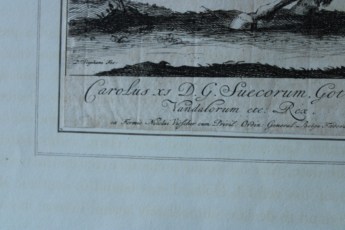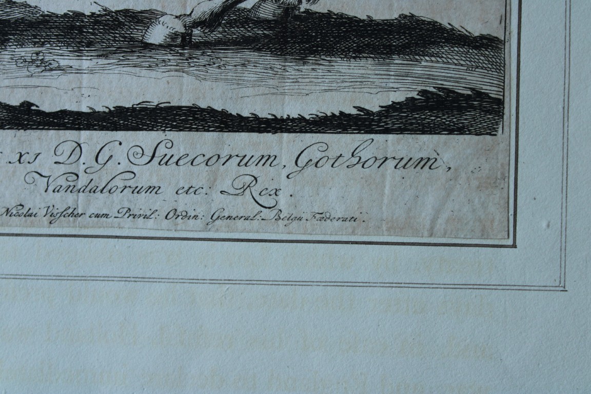 This etching is of Carolus XI DG Suecorum Gothorum Vandalorum etc Rex (Charles XI, King of the Swedish Goths and Vandals) 1689.