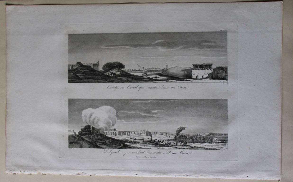 The full details of the composition of this plate are: 1. Calidji ou Canal qui conduit l’eau au Caire 2. L’Aqueduc qui conduit l’eau du Nil au Caire