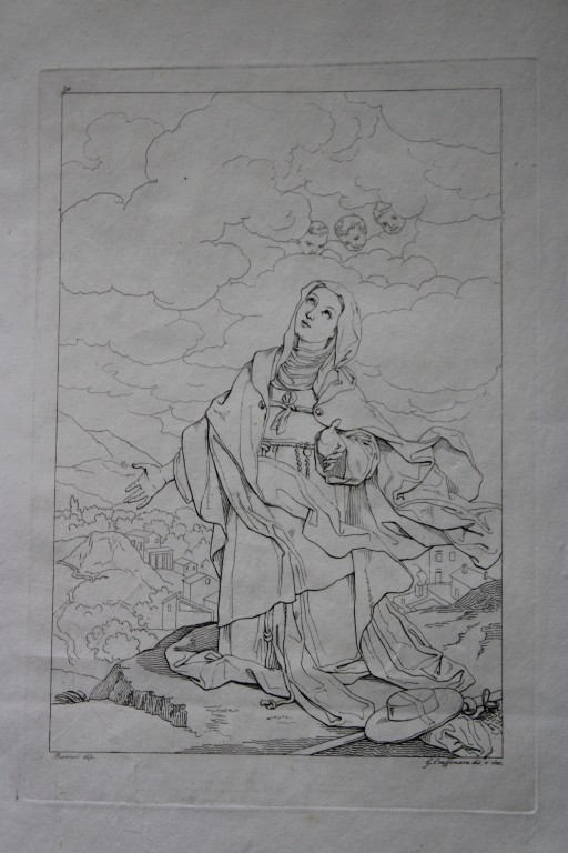This engraving is from I piu celebri quadri delle diverse scuole italiane by Giuseppe Antonio Guttani, Rome 1820. Printed by Filippo de Romanis.