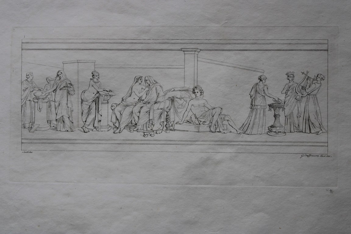 This engraving is from I piu celebri quadri delle diverse scuole italiane by Giuseppe Antonio Guttani, Rome 1820. Printed by Filippo de Romanis.
