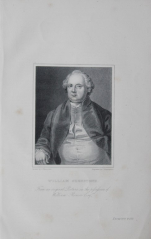 This engraving of William Shenstone, an English poet and landscape gardener, is by F Engleheart after a painting by John Thurston c1840.