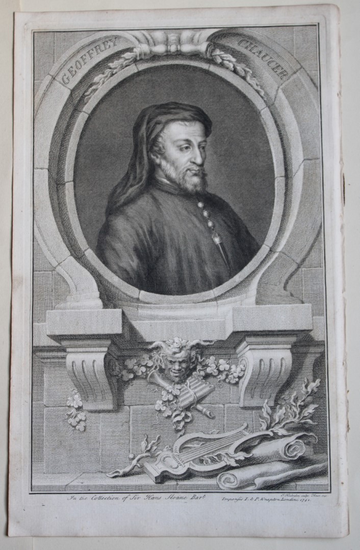 Lot 13070: Jacobus Houbraken - Rare engraving of Geoffry Chaucer 1747