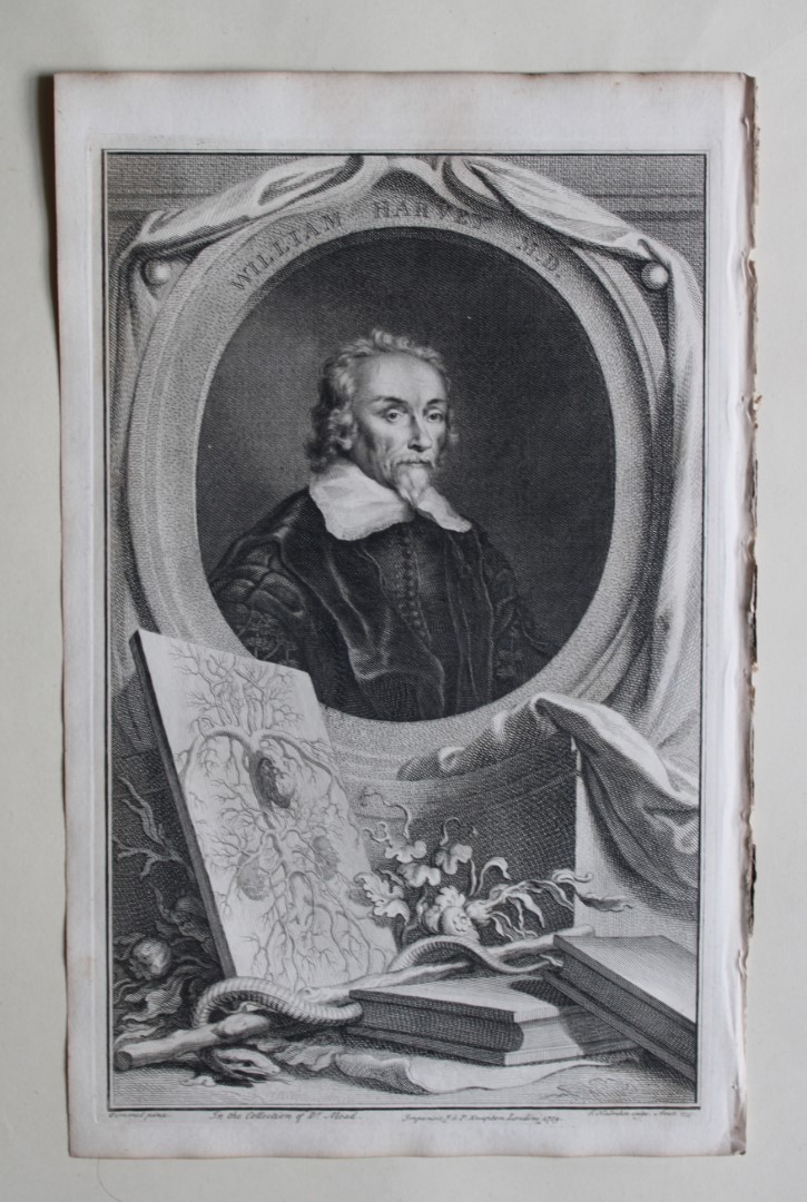Lot 13075: Jacobus Houbraken - Rare engraving of William Harvey MD 1747