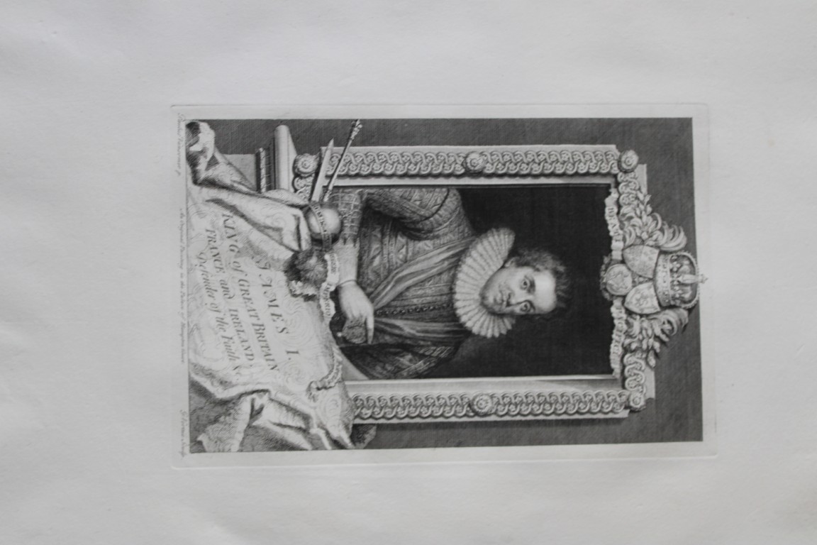 Lot 13104: George Vertue - Rare folio engraving of James I 1736