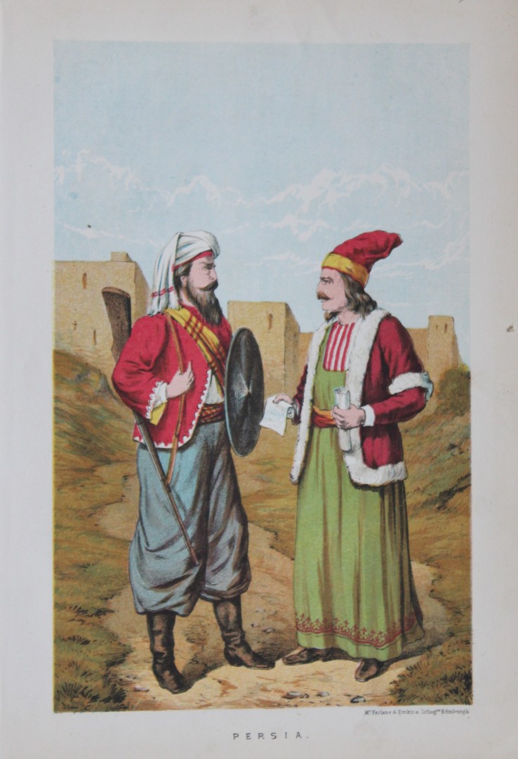 Lithograph entitled Persia of two Persian men in national costume by William McFarlane, Edinburgh 1872.