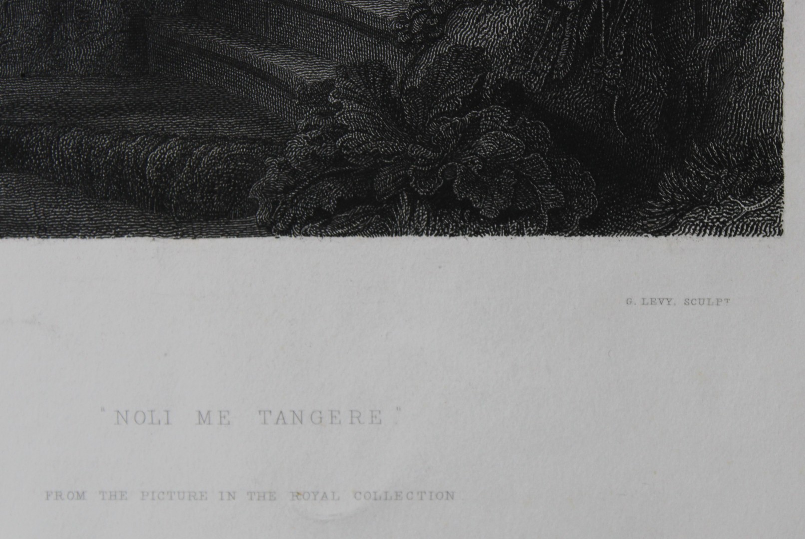 This engraving by Gustave Lévy entitled Noli Me Tangere (Touch me not) depicting Christ and Mary Magdalen at the Tomb after a painting by Rembrandt Van Rijn, 1857.