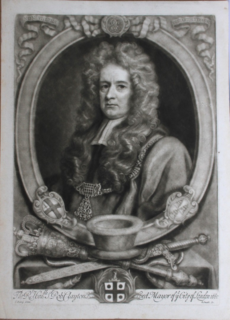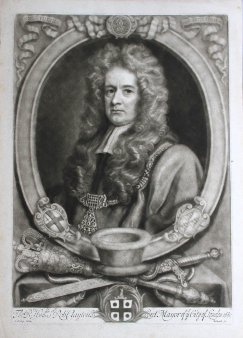 Mezzotint engraving of the Rt. Hon. Sir Robert Clayton engraved by John Smith after John Riley, c1685.