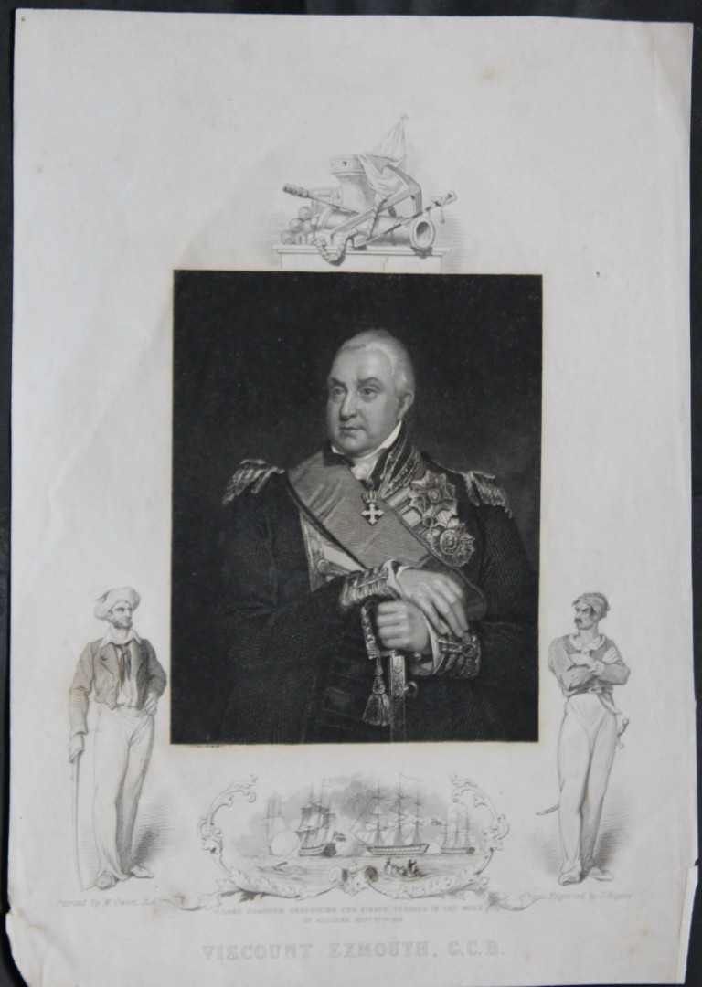 A bust-length portrait by William Owen and engraved by J Rogers of Edward Pellew, 1st Viscount Exmouth (1757–1833) in admiral’s full-dress uniform, published by J and F Tallis c1830.