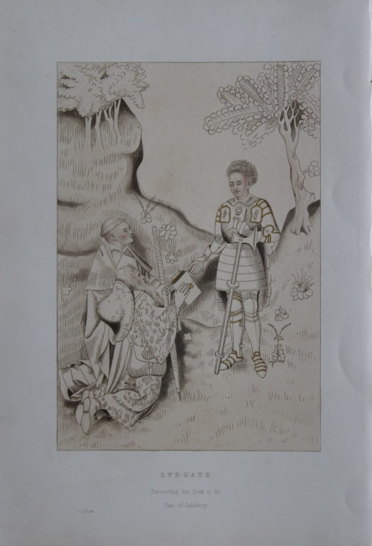 Lot 13177: Henry Shaw - Hand-coloured engraving of Lydgate & Earl of Salisbury 1858