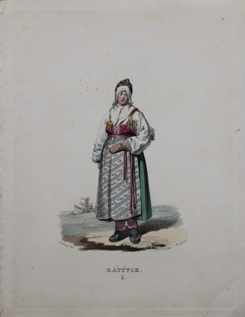 Lot 132014: Sandberg - Hand coloured lithograph of Rattvik folk, Sweden by Forssell 1836