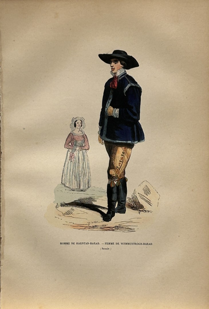 Lot 13506: A Wahlen - Woodcut engraving of Swedish man and woman 1843