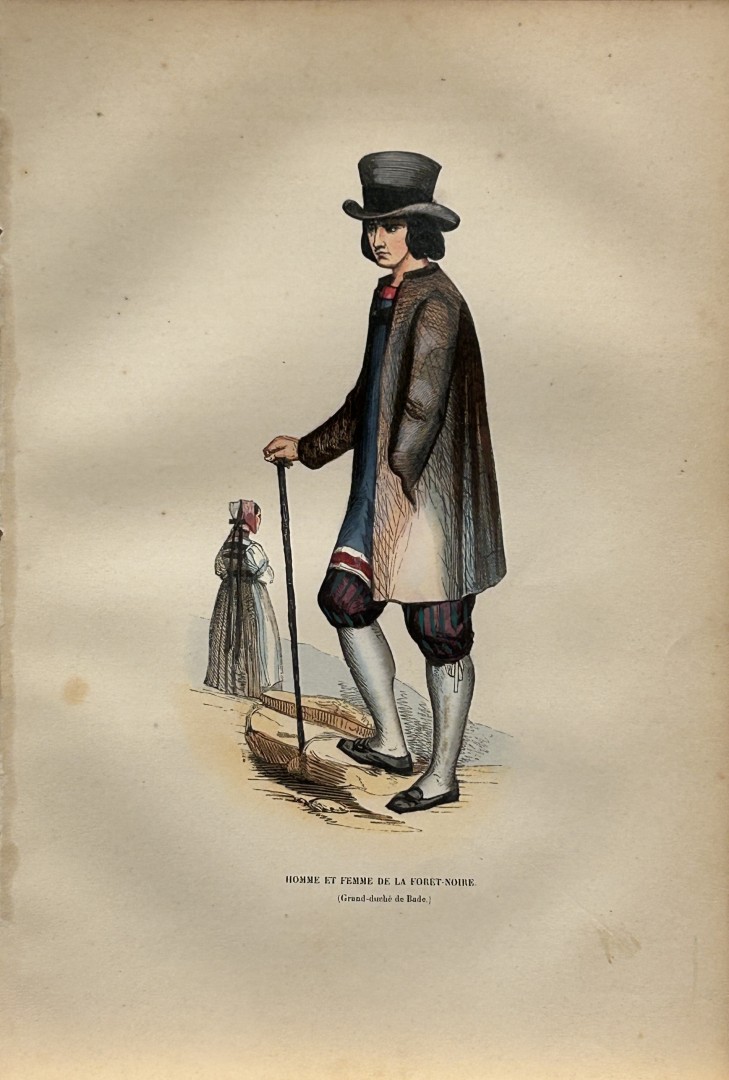 Lot 13509: A Wahlen - Woodcut engraving of man and woman from Black Forest 1843