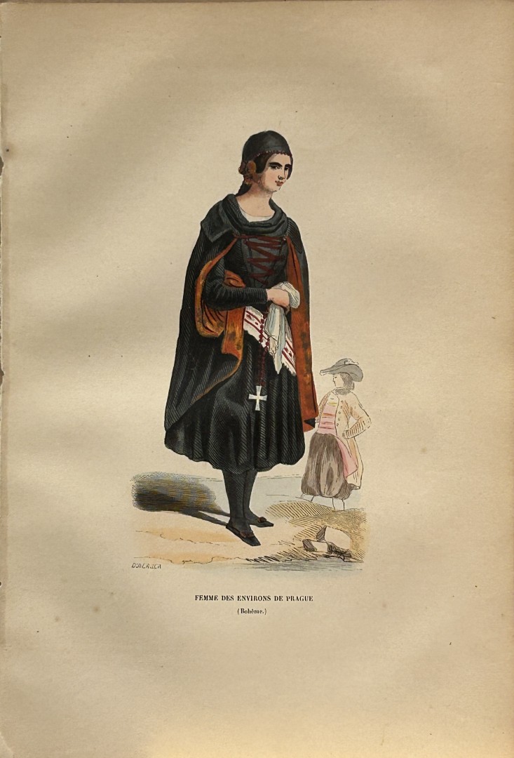Lot 13511: A Wahlen - Woodcut engraving of woman from Prague 1843